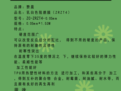 贊晨 TPU乳白色阻燃薄膜熱塑性聚氨酯LOGO箱包