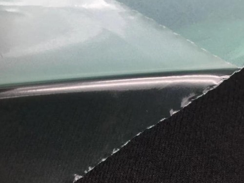 產(chǎn)品形態(tài):薄膜+PE,表面為霧面,熱貼合后呈透明的狀態(tài)。